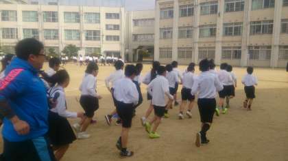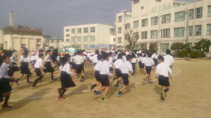 今日から、かけあし集会がはじまりました。前半は、一定の速さで、適切な運動量を確保します。体力を高めるための取り組みです。後半は、子どもたちが運動のめあてをもって自分のペースで走ります。2月3日(土)のかけあし大会に向けてみんな頑張っています。