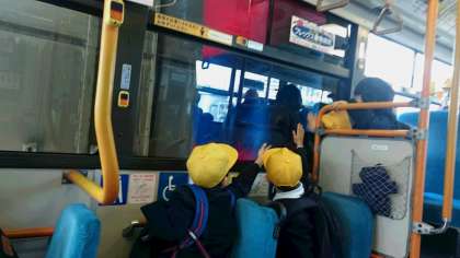 詳しい説明をきくことができました。バスに乗りながら「洗車」を体験しました。窓から洗車用ブラシが見られて驚きました。守口車庫のみなさん、ありがとうございました!