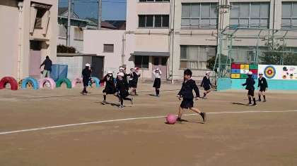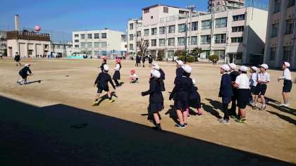 気温が低いので池の氷がなかなか溶けません。子どもたちは元気に運動場で遊んでいます。手洗い・うがいもしています!