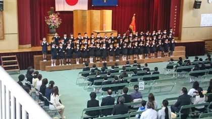 新入生は44名、緊張しながらもしっかりお話を聞いていました。2年生からお祝いの言葉や歌を歌ってもらいました。
