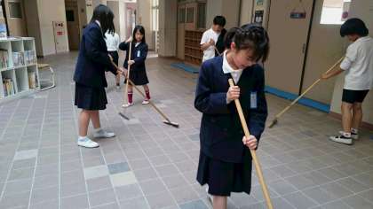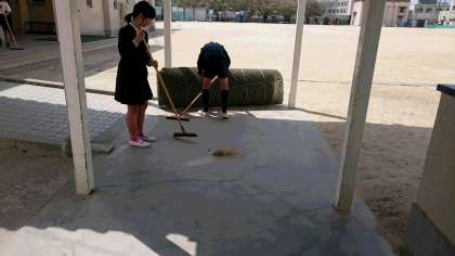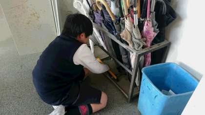 今日は大掃除です。職員室前を丁寧に掃除をしているのは6年生です。