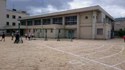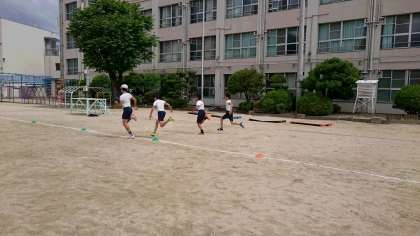 体力テストを実施しています。早く走るコツを思い出してみよう!