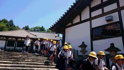 大仏殿からはグループ行動です。二月堂に行くまでに外国の方に英語で質問もします。