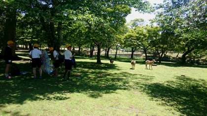 楽しみな昼食。鹿がよってきています。お菓子をとられないように!