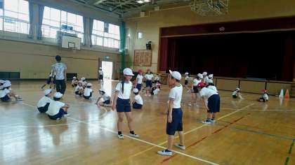 今日は山村聡先生にきていただき、体力向上授業を実施しています。都島区の取り組みです。体育のきらいな子もとても楽しく身体を動かしています!