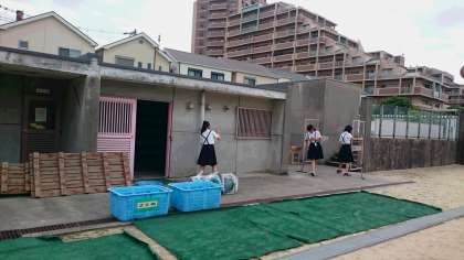 運動委員会は倉庫やプールまわりの清掃をしています。給食委員会はポスターを制作しています。