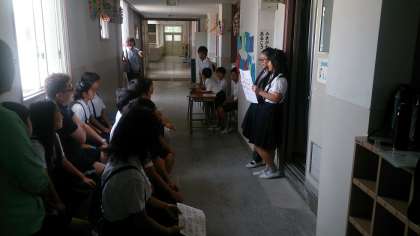 子どもたちは、前半と後半に分けて、お店番とお店めぐりをしました。高学年が、低学年の子どもたちを優しく手をつなぎお店をまわっている姿が微笑ましかったです。下の写真は、子どもたちが各学級で考えたお店で楽しく過ごしている様子です。