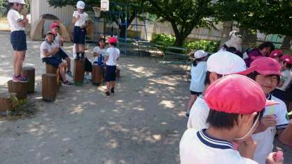 プールの後は冷たいおやつです。暑いけれど冷たいものをいただいたら元気が出てきました。
