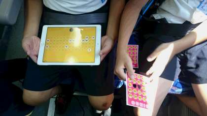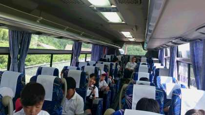 二回目の休憩は「まほろばの里」です。周りは小学生ばかり。バスの中ではレクリエーションをやっています。ビンゴやクイズをしています。係がとても頑張っています!