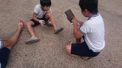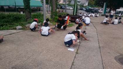 焼き板の作成。きれいな木目が出るまで磨きます。