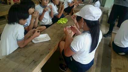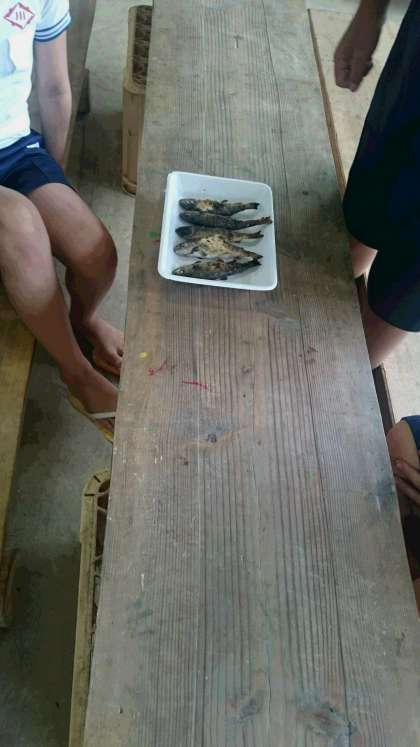 魚つかみでつかんだアマメを焼いてもらいました。しっかり食べています。