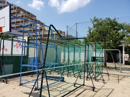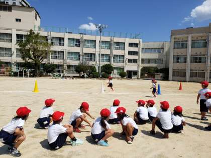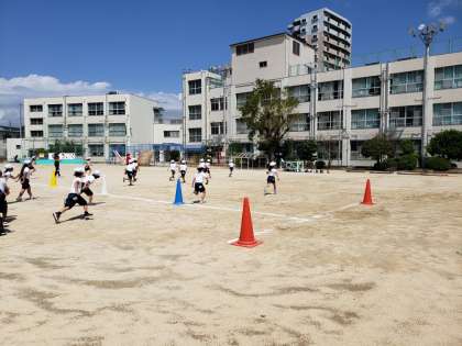 昨日の片づけを朝早くから教職員全員で行いました。今日はとても良い天気で1年生の体育もとても頑張っています!