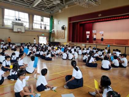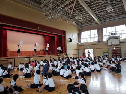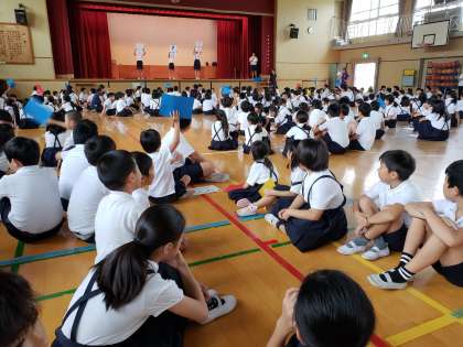 飼育栽培委員会の発表です。クイズ形式で答えます。低学年の児童も班を代表して答えています。