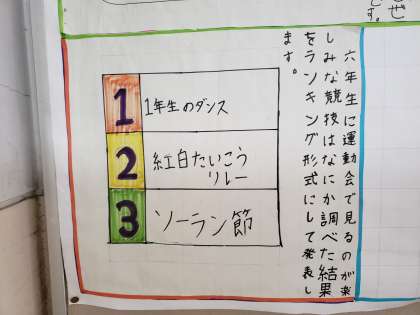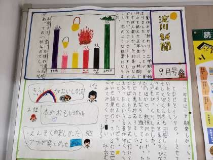 職員室前に掲示してある「淀川新聞」です。林間学習では「山登り」が一番楽しかったこととなりました。達成感を味わえたのがよかったのでしょう。次もいろんなことにチャレンジしてほしいです。