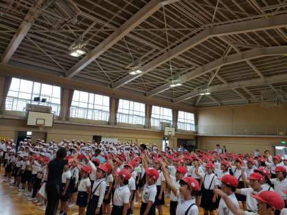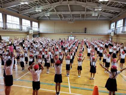 雨のため、運動会の全体練習がなかなかできません。今日は講堂に集まって開会式と閉会式そして応援の練習をしました。「運動会」の歌は元気いっぱいの声が響いていました。