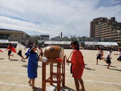 午前中はじめの応援合戦です!かわいい声が響いています。