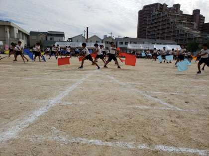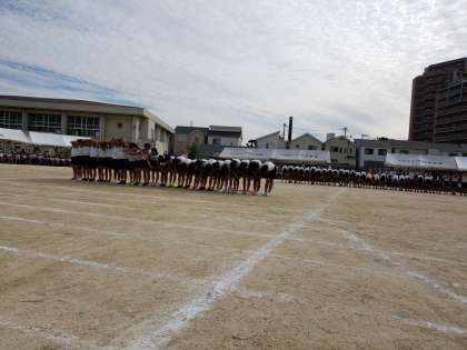 運動会最後は6年生の演技です。約15分間の演技の間、しっかりとした気持ちでお互いを支え合い素晴らしいものを見せてくれました。