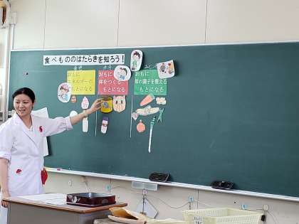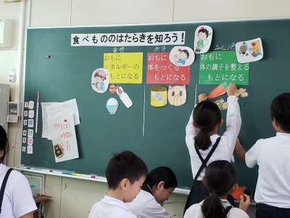 栄養指導の時間です。金曜日の給食の食材を振り分けています。栄養のバランスを考えてしっかり食べましょう!
