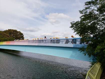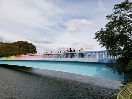 虹の橋を渡って長居の駅に向かいます。予定より少し早く帰ります。