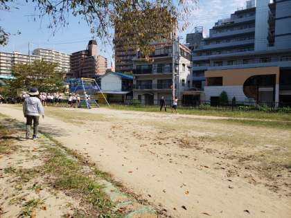 広場で遊んでいます!大喜び!