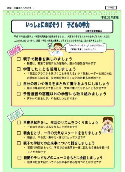 先日、配布しました「いっしょにのばそう!子どもの学力」(保護者用リーフレット)を配布文書で公開しました。