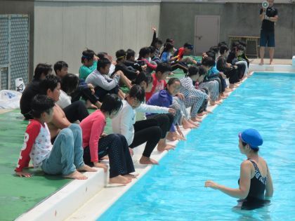 4年生と6年生が「着衣泳」をしました。服を着たまま水につかると重くなり、思うように泳げないことを体感できたと思います。しかし何よりも大切なことは川や海には準備なしには近づかないことです。
