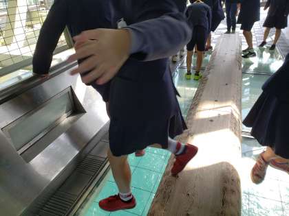 大橋から見学です。キャー!という声も聞こえます。