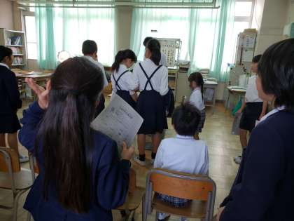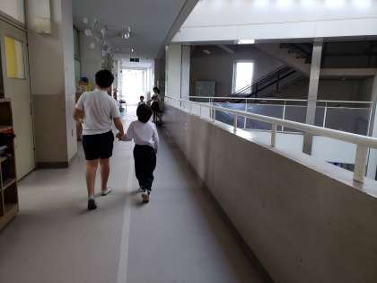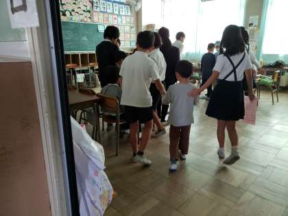 5年生が就学時検診のお手伝い。一人ひとり手をつないで検診に向かいます。
