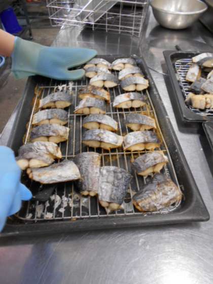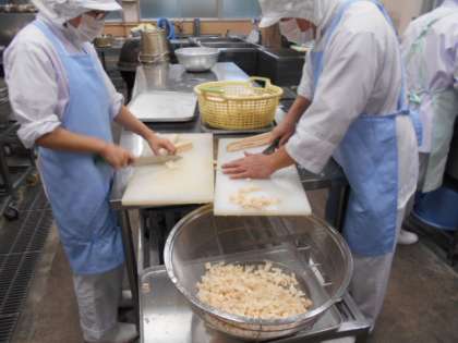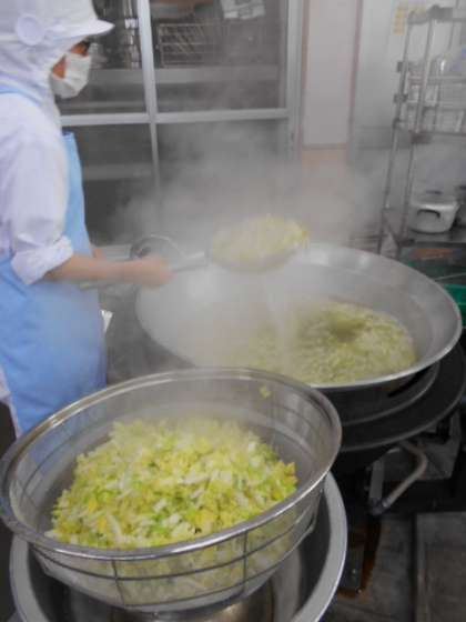 給食室の調理員さんの調理の様子です。
