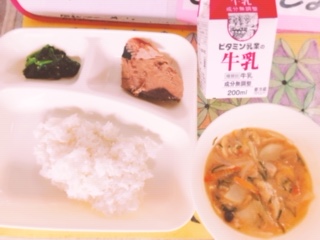 今日の給食は、なまりぶしのしょうが煮、みそ汁、ほうれん草のごまあえ、米飯、牛乳でした。「生利節」は、生のカツオをゆでる、むす、などのしょりをした加工食品です。