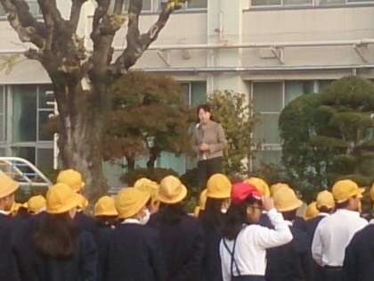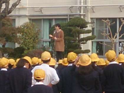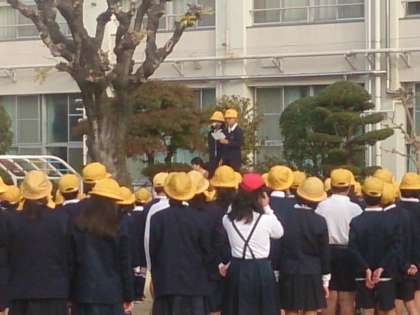 今日の児童朝会では、校長先生より募金の講話、代表委員会からユニセフ募金についてのお知らせと栄養教諭の先生からは、今月の給食目標「感謝して食べよう」に関するお話がありました。