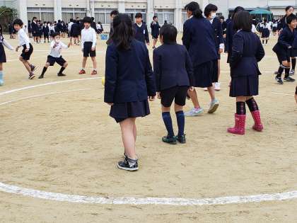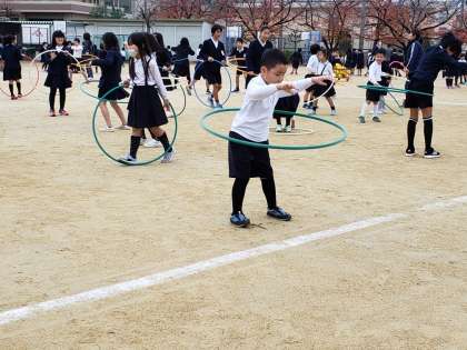 15分休憩時に「みんなあそび」をします。12月は4コーナーにわかれて遊びます。6年生がリーダーシップを取って活動しています。