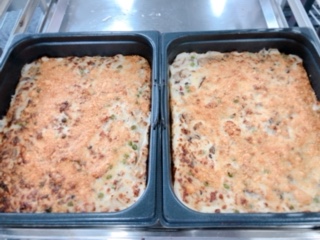 今日の給食は、鶏肉とじゃがいものスープ煮、きのこのドリア、ミニフィッシュ、パン、牛乳です。きのこのドリアの食材であるエリンギは、イタリア、フランス、ロシアなどで山や野に自然に生えているきのこです。もともと日本にはないきのこでしたが、平成5年に愛知県で、はじめて栽培に成功しました。おがくずや栄養分を入れたびんで栽培されています。