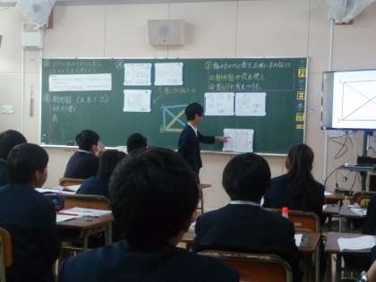 今日の5限目に、6年生で算数の研究授業がありました。「順序よく整理して調べよう」という単元で、確率の素地となる組み合わせの学習です。子どもたちは、ノートにしっかりと考え方を書き、発表しました。