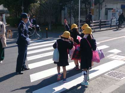 子どもたちは、警察官の方に、信号の渡り方を丁寧に指導を受けていました。