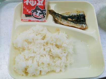 今日の給食は、節分の行事献立で、イワシの生姜醤油かけ、含め煮、いり大豆です。