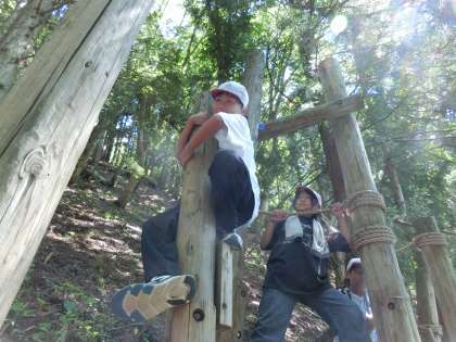 【写真下】一人の挑戦を班のみんなが応援しています。こうした助け合いが、チームワークにつながっていきます。