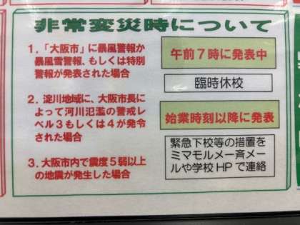 5月29日付のお便り「非常変災時の措置について」も添付しておきます。 ここをクリック↓