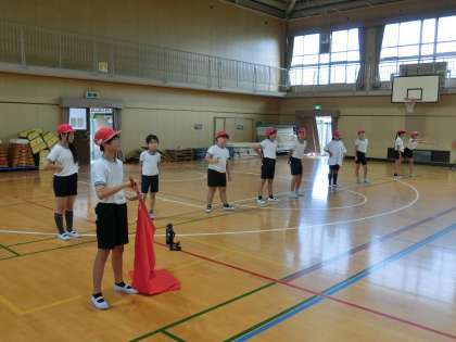 紅白に分かれて、「エール」や「応援の動き」を自分たちで考えながら、一生懸命に練習を続けています。