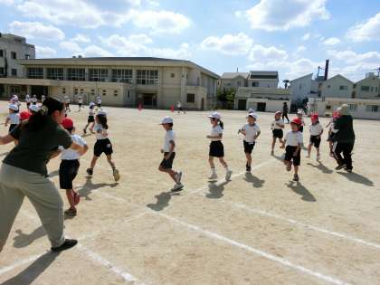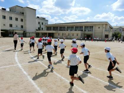 1年生は、初めての運動会に向けて、大きな運動場で練習を行っています。