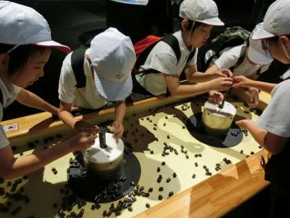 大阪市立科学館の中には、様々な実験ゲームのコーナーがあって、子どもたちは班活動でたくさんのゲームを楽しみました。