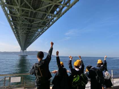 【写真上】あの雄大な「明石海峡大橋」を、すぐそばで見ます。その大きさにびっくり!