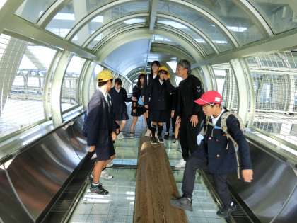 【写真下】明石海峡大橋にある「舞子プロムナード」で、大橋を体感します。