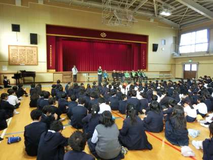 そんな見守りたいの方に感謝を伝える子どもたち。手作りの寄せ書きを贈ったり、校歌を歌ってプレゼントしたりしました。