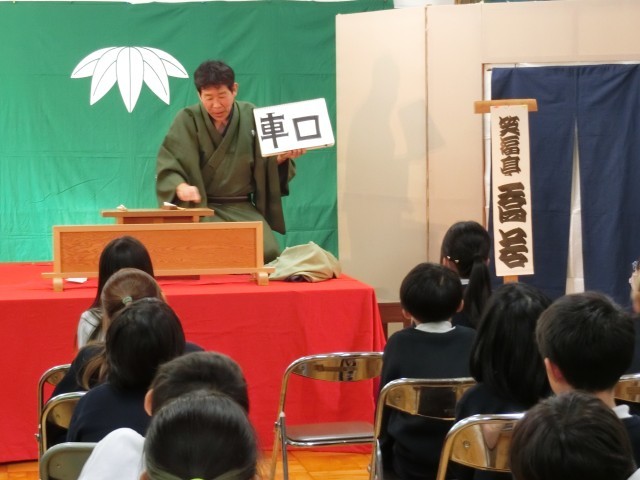 子どもの代表に落語におけるうどんの食べ方を教えてくださるワークショップや、車へんの漢字クイズも大いに盛り上がりました。今日の4年生は上質のお客様とお褒めの言葉をいただきました。