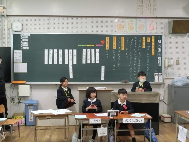 1年生が、自分たちで「3学期の係を決める学級活動」の様子を授業公開しました。