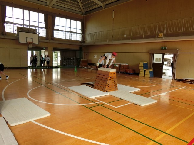「開脚飛び」「閉脚飛び」「台上前転」など、様々な跳び方に挑戦しています。