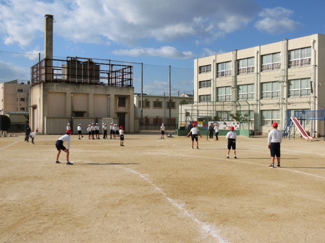 バスケットボール部の男の子たちは6年生と、ソフトボール部の女の子たちは5年生とスポーツ交流しました。