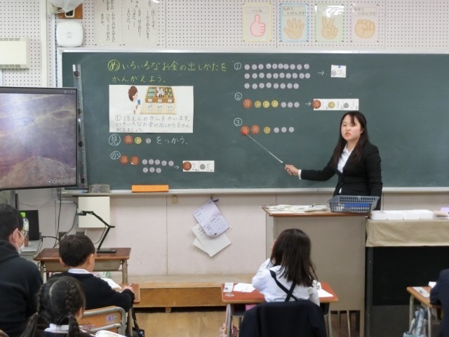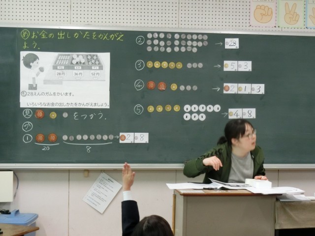 10円を使ったり、5円を使ったり、1円を使ったりしながら、「どうすれば28円の買い物ができるか」をみんなで考えたのです。