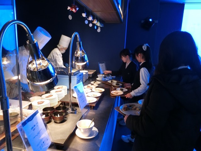 そして始まった「須磨シーワールドバイキング。」和洋中の様々な料理や、明石の海産物。神戸牛のカレーに、鯛のお寿司。